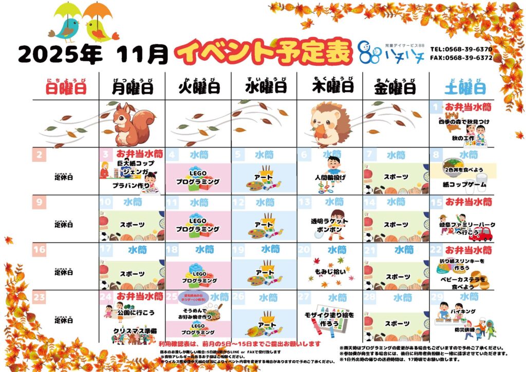 2025年11月のイベント予定表です。