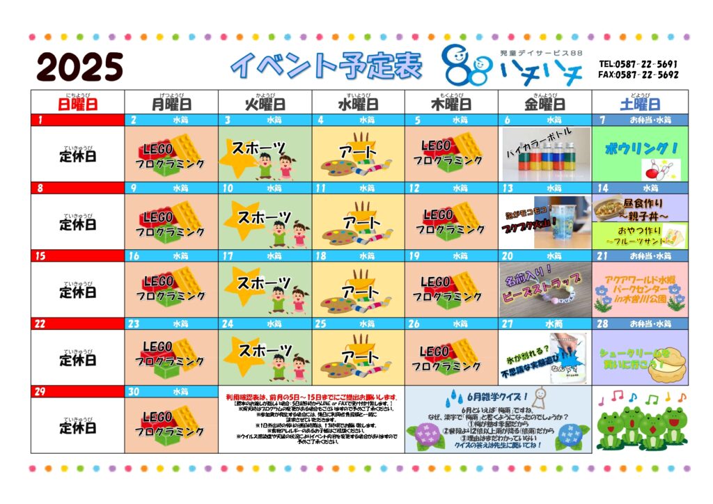 2025年6月1日 / 最終更新日時 : 2026年4月28日 88style Inazawa 2025年6月 イベント予定表【88Inazawa】 2025年6月のイベント予定表です。 コメントを残すメールアドレスが公開されることはありません。 ※ が付いている欄は必須項目ですコメント ※ 名前 ※ メール ※ サイト 上に表示された文字を入力してください。