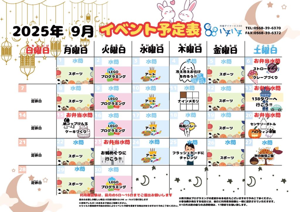 2025年9月のイベント予定表です。