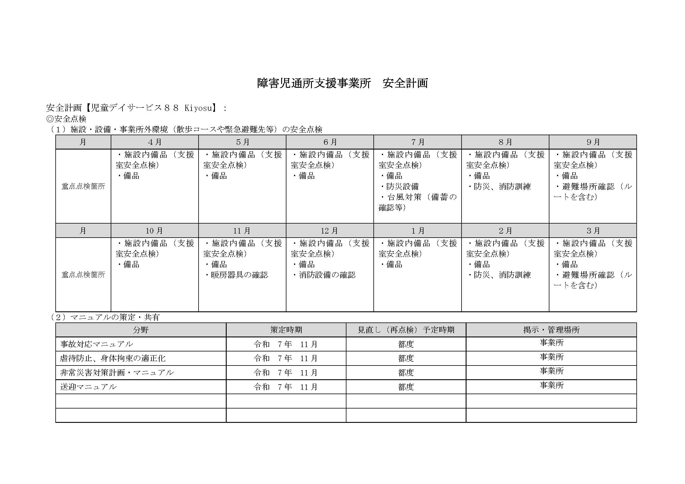 この改正を受け、88(ハチハチ)の「安全計画」を制定しました。